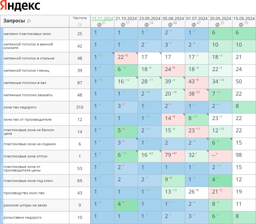 За время работы 62 запроса выведено в ТОП-3 и 95 запросов в ТОП-10.